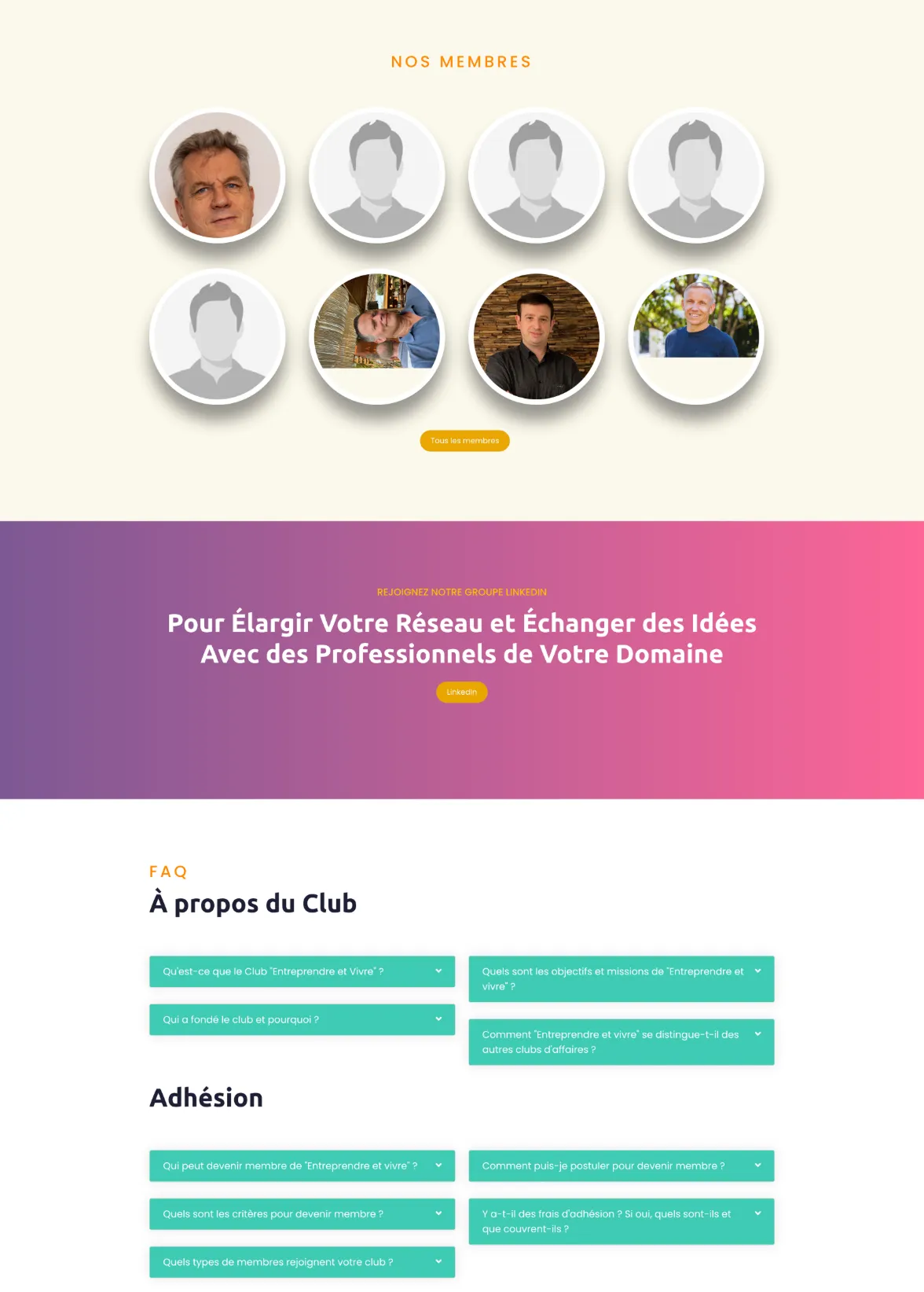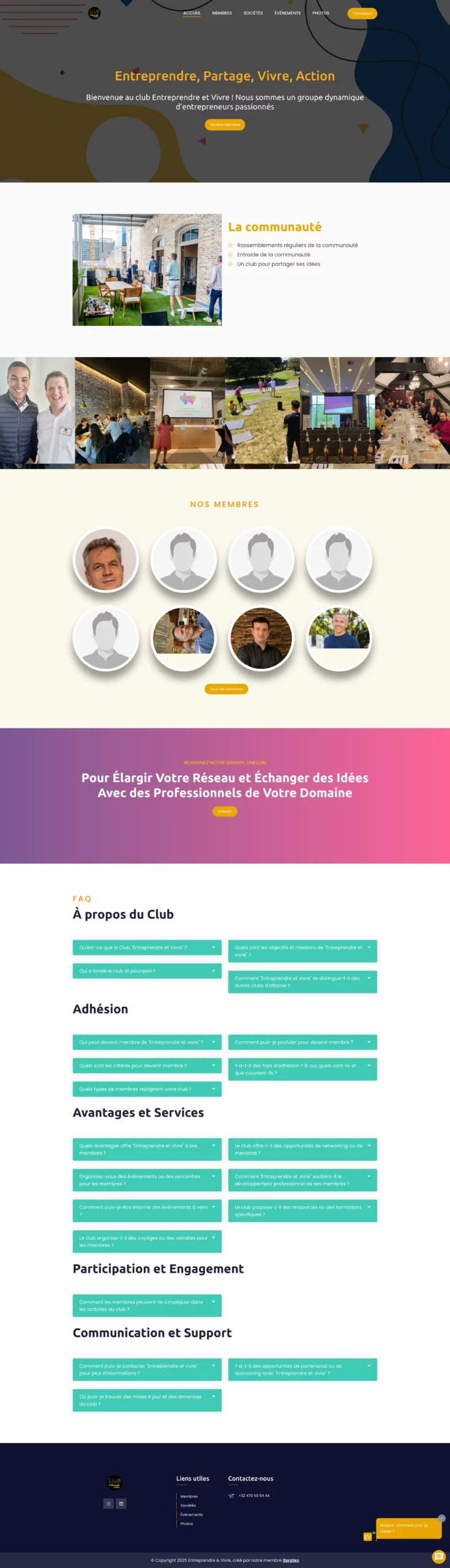 Le Club Entrepreneur “Entreprendre et Vivre” a confié à iterates la création d’une plateforme digitale sécurisée destinée à ses membres. L’objectif était de favoriser les mises en relation entre entrepreneurs, faciliter le partage d’informations et offrir un accès rapide à des experts grâce à un chatbot intelligent, le tout via une interface moderne et accessible.